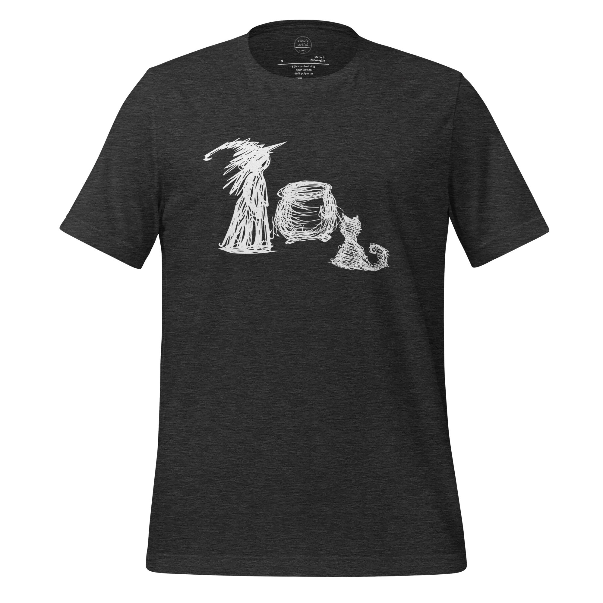 Soft, lightweight, and slightly stretchy, this unisex tee features my loose, sketchy illustration of a witch, her trusty cat, and a bubbling cauldron. Perfect for cozy days at home, moonlit adventures, or adding a touch of playful magic to your wardrobe.